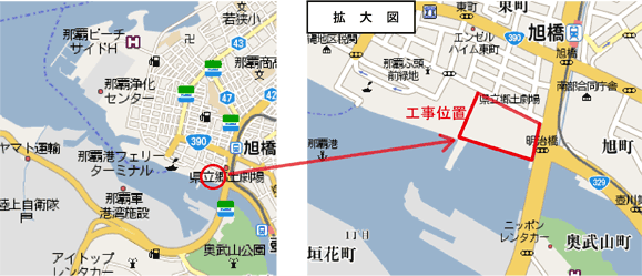 那覇港那覇ふ頭地区において、護岸近接道路部の強度増加と沈下低減を図る目的で、真空圧密ドレーン工法による地盤改良が実施された。 |